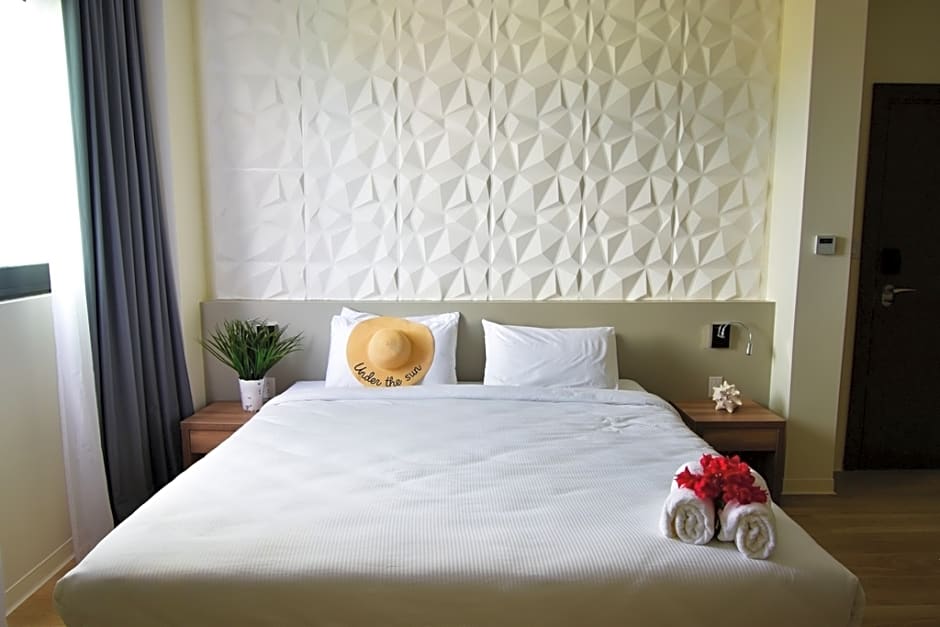 Double standard is 194 square feet and includes a king-size bed 150-183 width plus hairdryer, ironing set, and safe.